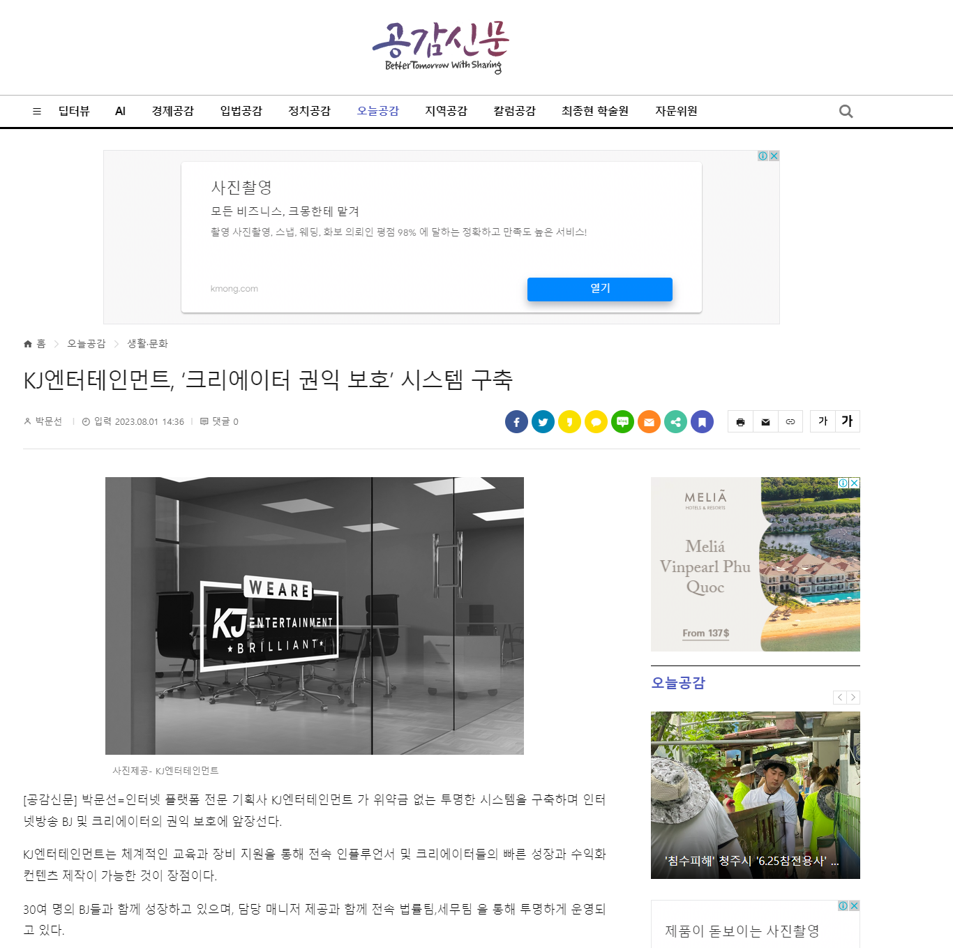 [°ø°¨½Å¹®] ¹Ú¹®¼±=ÀÎÅÍ³Ý Ç÷§Æû Àü¹® ±âȹ»ç KJ¿£ÅÍÅ×ÀÎ¸ÕÆ® °¡ À§¾à±Ý ¾ø´Â Åõ¸íÇÑ ½Ã½ºÅÛÀ» ±¸ÃàÇϸç ÀÎÅͳݹæ¼Û BJ ¹× Å©¸®¿¡ÀÌÅÍÀÇ ±ÇÀÍ º¸È£¿¡ ¾ÕÀå¼±´Ù.